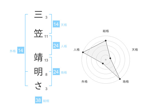 三笠 靖明ささんの地格は24画の5点!