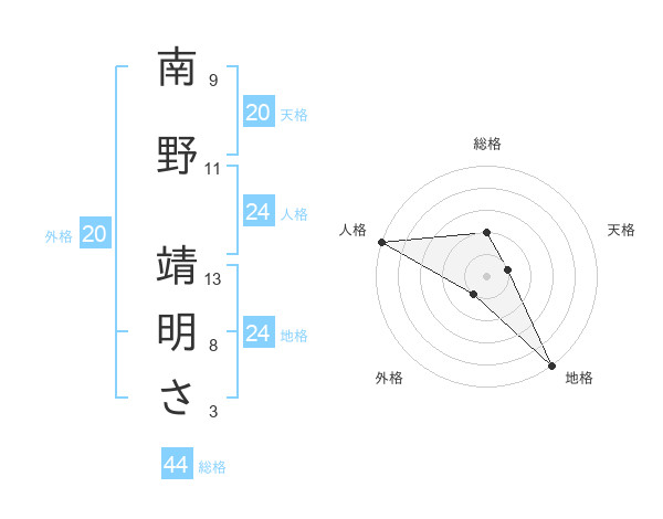 南野 靖明ささんを姓名の画数から五運を鑑定