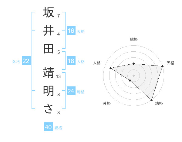 坂井田 靖明ささんを姓名の画数から五運を鑑定