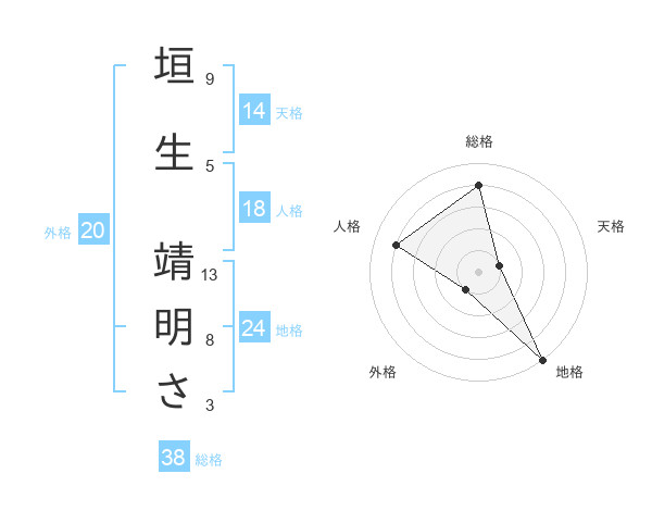 垣生 靖明ささんを姓名の画数から五運を鑑定