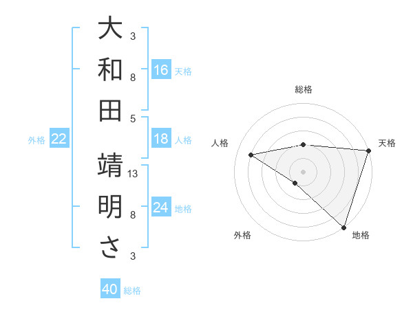 大和田 靖明ささんを姓名の画数から五運を鑑定