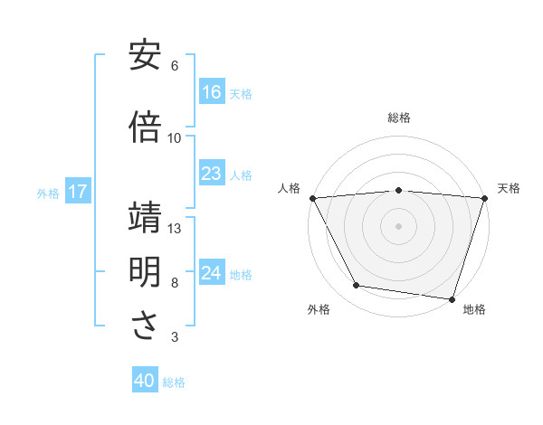 安倍 靖明ささんを姓名の画数から五運を鑑定