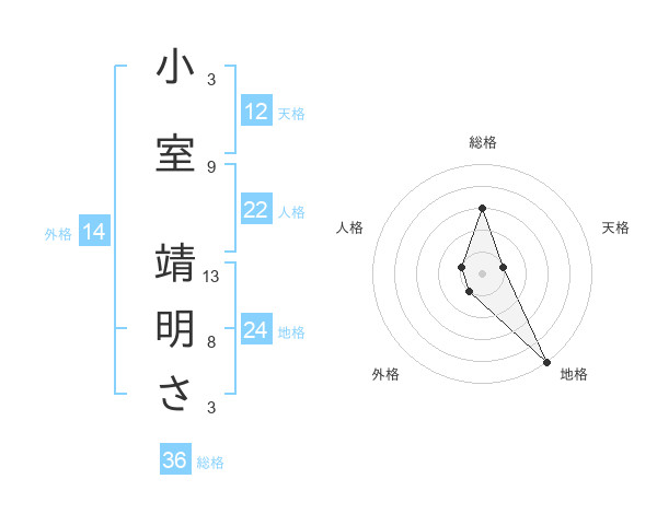 小室 靖明ささんを姓名の画数から五運を鑑定