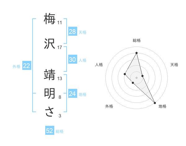 梅沢 靖明ささんを姓名の画数から五運を鑑定