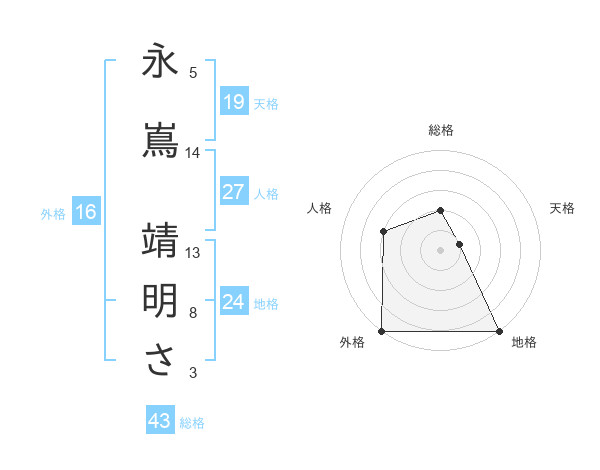 永嶌 靖明ささんを姓名の画数から五運を鑑定