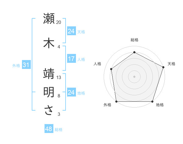 瀬木 靖明ささんの天格は24画の5点!