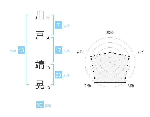 川戸 靖晃さんを姓名の画数から五運を鑑定