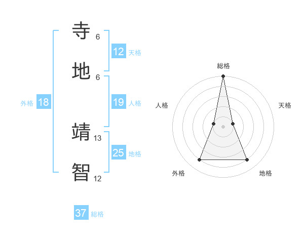 寺地 靖智さんの総格は37画の5点!