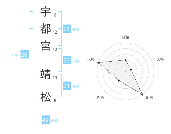 宇都宮 靖松さんを姓名の画数から五運を鑑定