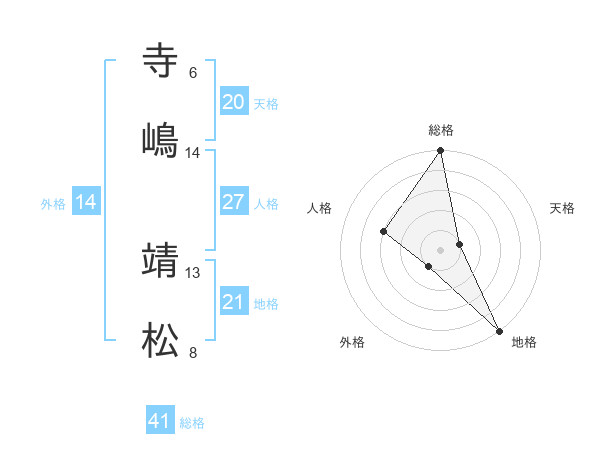 寺嶋 靖松さんの総格は41画の5点!