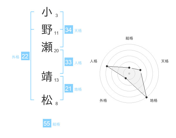 小野瀬 靖松さんを姓名の画数から五運を鑑定