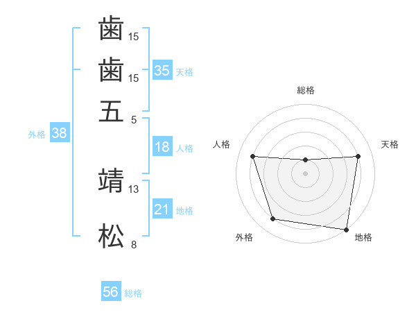 歯歯五 靖松さんの外格は38画の4点!