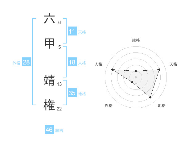 六甲 靖権さんの地格は35画の4点!