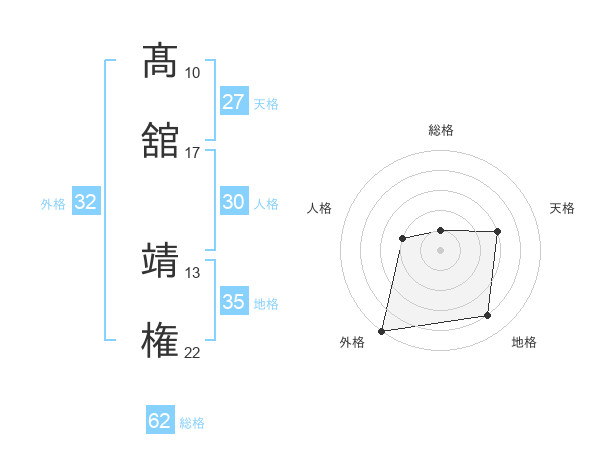 髙舘 靖権さんを姓名の画数から五運を鑑定