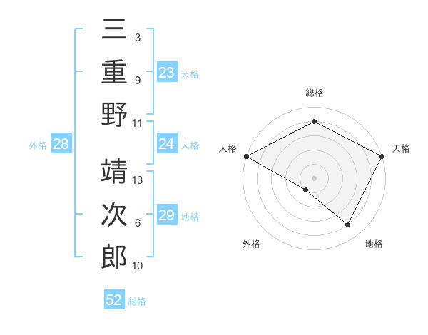 三重野 靖次郎さんの総格は52画の4点!