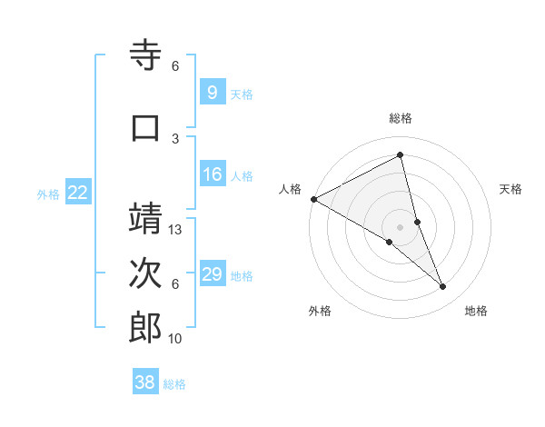 寺口 靖次郎さんの総格は38画の4点!