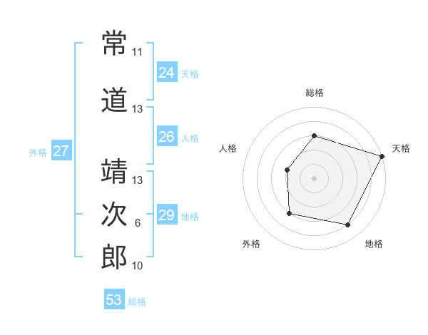 常道 靖次郎さんを姓名の画数から五運を鑑定
