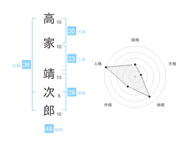 高家 靖次郎さんを姓名の画数から五運を鑑定
