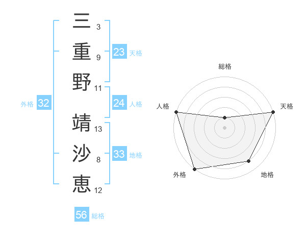 三重野 靖沙恵さんを姓名の画数から五運を鑑定