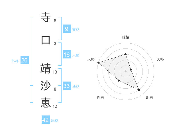 寺口 靖沙恵さんを姓名の画数から五運を鑑定