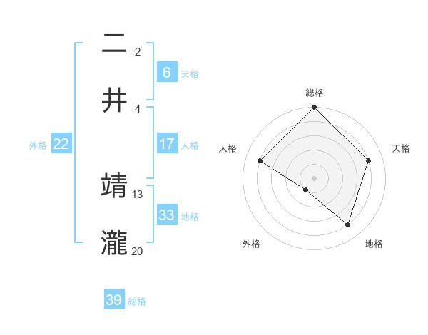 二井 靖瀧さんを姓名の画数から五運を鑑定