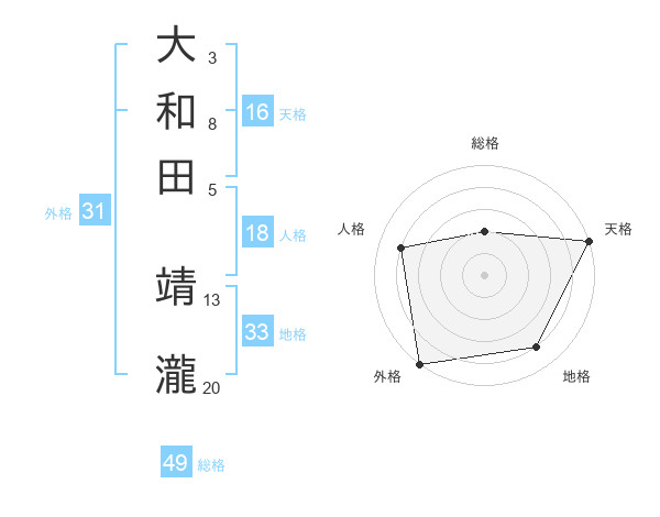大和田 靖瀧さんを姓名の画数から五運を鑑定