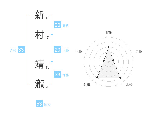 新村 靖瀧さんを姓名の画数から五運を鑑定