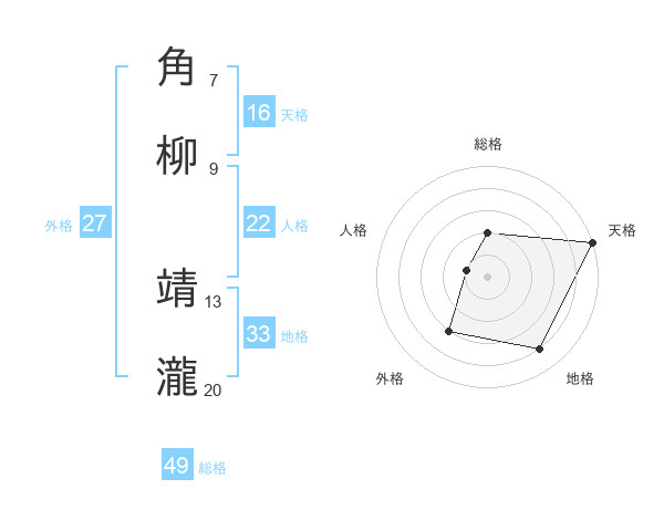 角柳 靖瀧さんの総格は49画の2点!