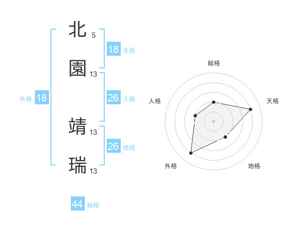 北園 靖瑞さんを姓名の画数から五運を鑑定