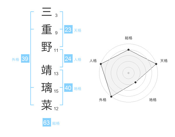 三重野 靖璃菜さんを姓名の画数から五運を鑑定
