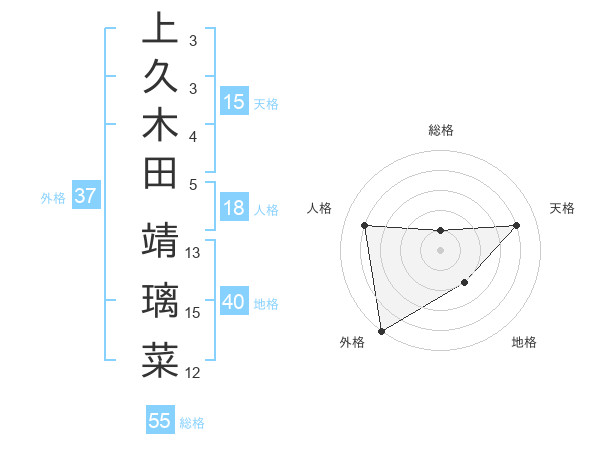 上久木田 靖璃菜さんを姓名の画数から五運を鑑定