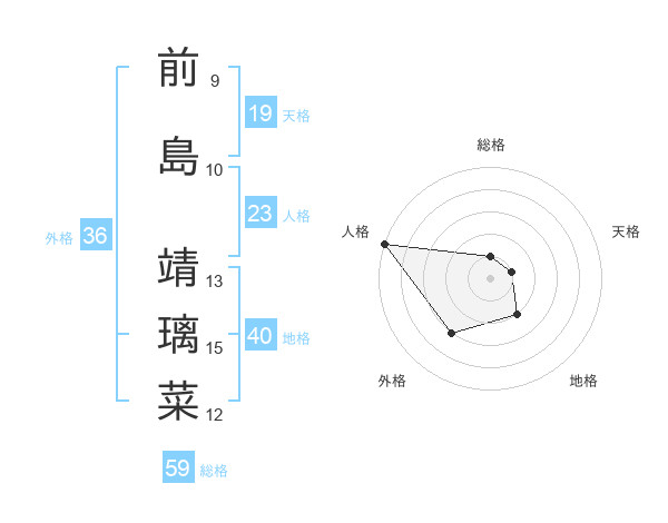 前島 靖璃菜さんを姓名の画数から五運を鑑定