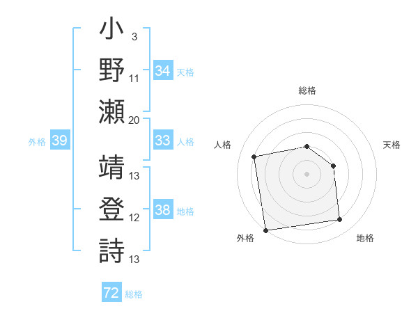小野瀬 靖登詩さんを姓名の画数から五運を鑑定
