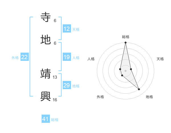 寺地 靖興さんの総格は41画の5点!