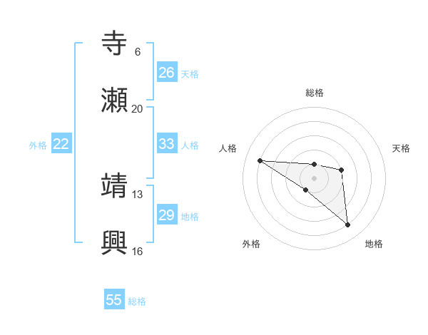寺瀬 靖興さんの総格は55画の1点!