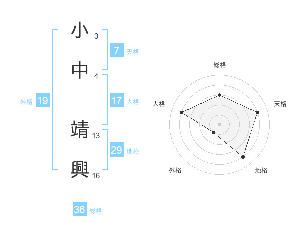 小中 靖興さんの総格は36画の3点!