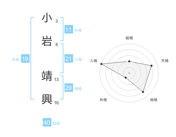 小岩 靖興さんを姓名の画数から五運を鑑定