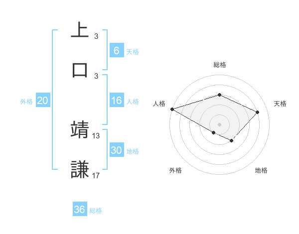 上口 靖謙さんを姓名の画数から五運を鑑定