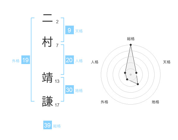 二村 靖謙さんを姓名の画数から五運を鑑定