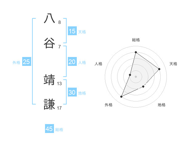 八谷 靖謙さんを姓名の画数から五運を鑑定