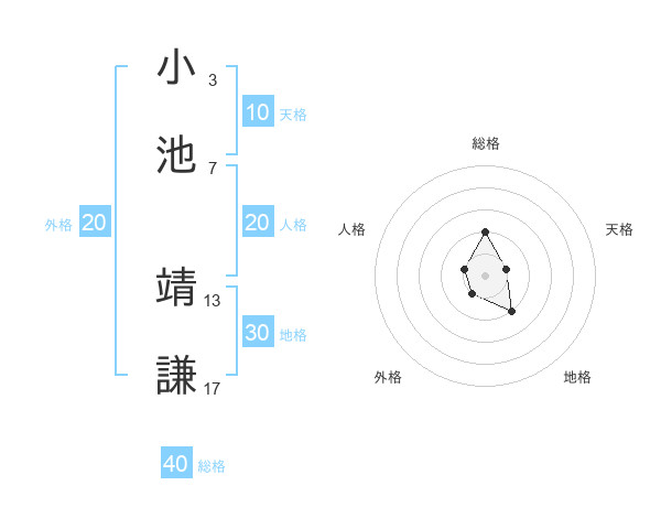 小池 靖謙さんを姓名の画数から五運を鑑定