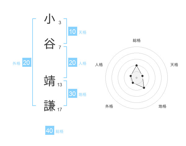 小谷 靖謙さんを姓名の画数から五運を鑑定
