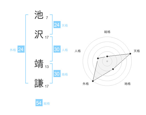 池沢 靖謙さんの外格は24画の5点!