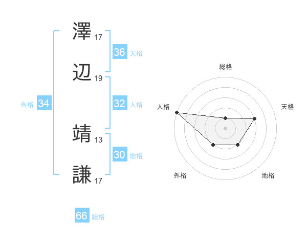 澤辺 靖謙さんの総格は66画の1点!