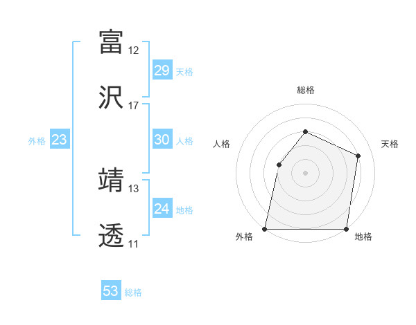 富沢 靖透さんの外格は23画の5点!