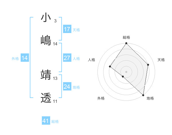 小嶋 靖透さんを姓名の画数から五運を鑑定