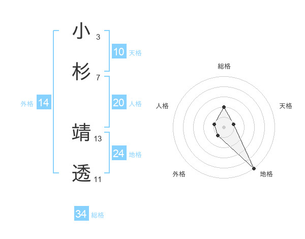 小杉 靖透さんの総格は34画の2点!