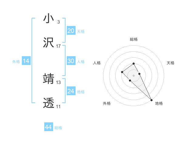小沢 靖透さんの総格は44画の2点!