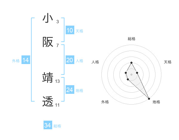小阪 靖透さんの総格は34画の2点!