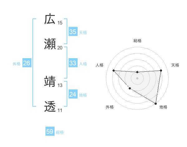 広瀬 靖透さんの総格は59画の1点!